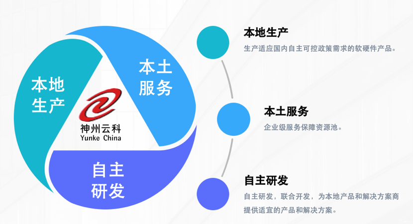 紧跟国家自主可控战略,神州3044永利通过“本地生产、本土服务、自主研发”的战略路径,打造自主品牌、生产自主产品,为合作伙伴提供神州数码自主品牌、自主知识产权的云基础设施产品、服务及解决方案。